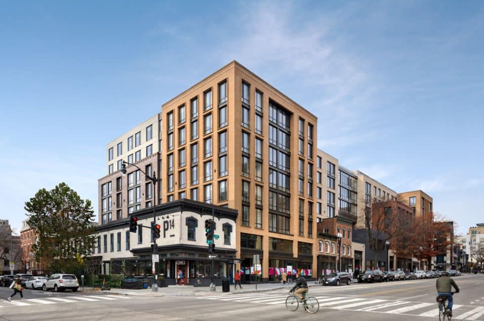 A new 7-story, 240,000 SF mixed-use multi-family building. The development has 233 apartment units with penthouse amenities, rooftop terraces, green roof and structured bio-retention, ground level retail and office space, and below-grade parking. The structure is comprised of post-tensioned concrete slabs at the elevated levels, reinforced cast-in-place concrete construction below grade with a continuous mat foundation.